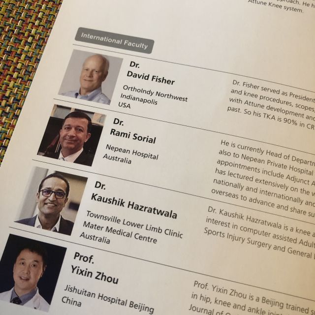 Exploring Robotic Solutions for Total Knee Replacement. Invited Faculty by Johnson and Johnson. Advisory role to the Global Knee Marketing team for Depuy Synthes.